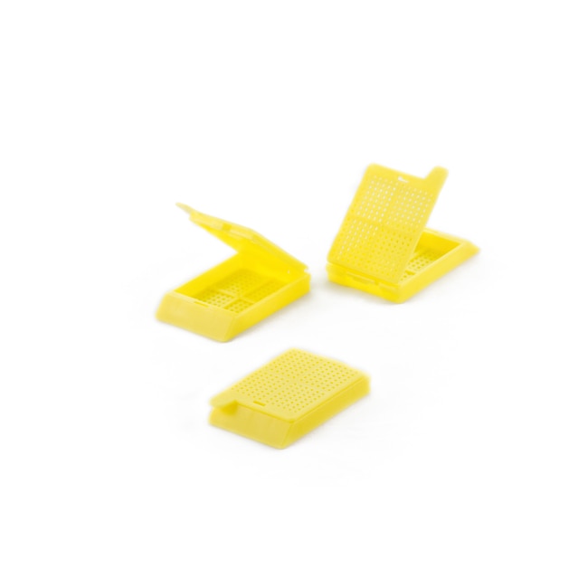 IMEB, Inc Tek-Select Type 8 Biopsy Cassettes with Hinged Lid, Yellow, 1000 per Case, Frosted Easy to Write On, Lids Attached