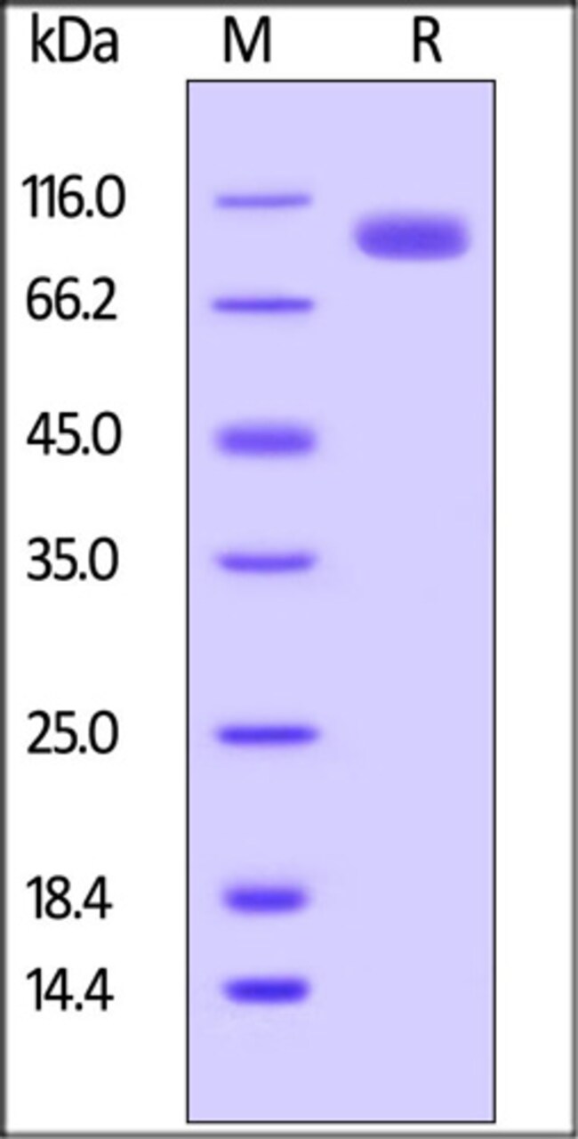Recombinant Protein;25UG;Biotinylated Human LILRB5, Fc,Avitag (CDC-H82F8) is expressed from human 293 cells (HEK293). It contains AA Gly 24 - Gly 458 (Accession # O75023-1).;This protein carries a human IgG1 Fc tag at the C-terminus, followed by a Avi tag (Avitag™). The protein has a calculated MW of 75.8 kDa. The protein migrates as 90-105 kDa under reducing (R) condition (SDS-PAGE) due to glycosylation.