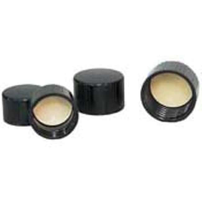 Bellco Glass, Inc. Black phenolic screw caps are manufactured from specially formulated phenolic resin to resist the effects of temperature and stem autoclaving. They have a non-toxic white rubber liner for all general culture applications. Packed 72 per case.