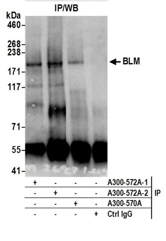 BLM Rabbit anti-Human, Mouse, Polyclonal, Bethyl Laboratories