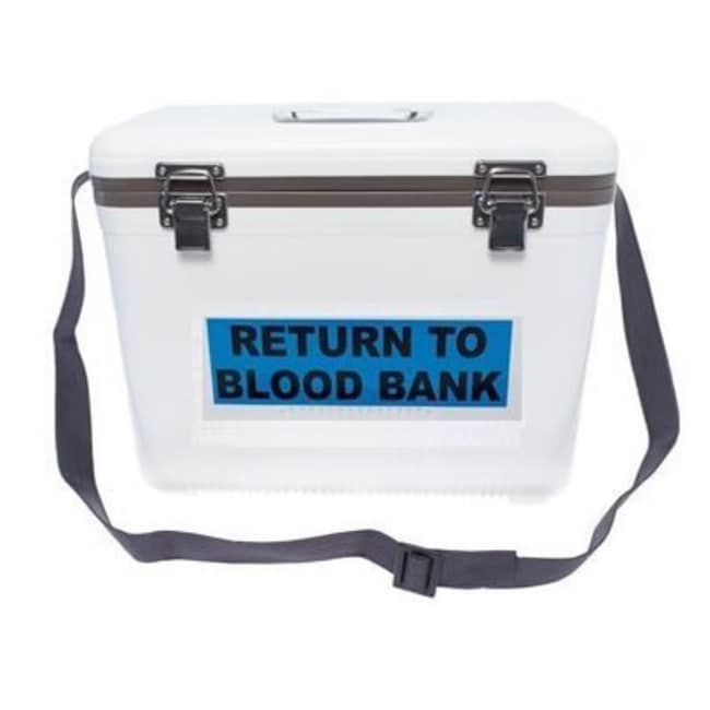 Blood Bank Transport Cooler, 19 Quart can hold up several units of blood or other specimens as well as three ice packs. Cooler has been validated to hold temperature for at least 8 hours under normal hospital conditions. External Dimensions: 16.6"L x 11"W x 13"H.