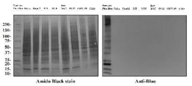Blue Marker Monoclonal specifically detects Blue Marker in Non-species specific samples. It is validated for Western Blot.Specifications
