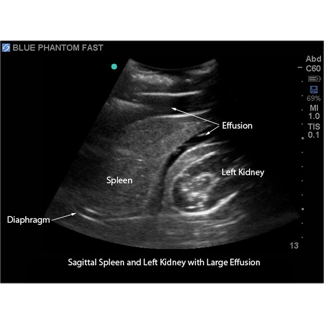 - Abdominal Structures Includes: Liver, Gallbladder, Kidneys, Spleen, Stomach, Bladder, Bowel, Colon, and Fluid to diagnosis trauma with the FAST exam.