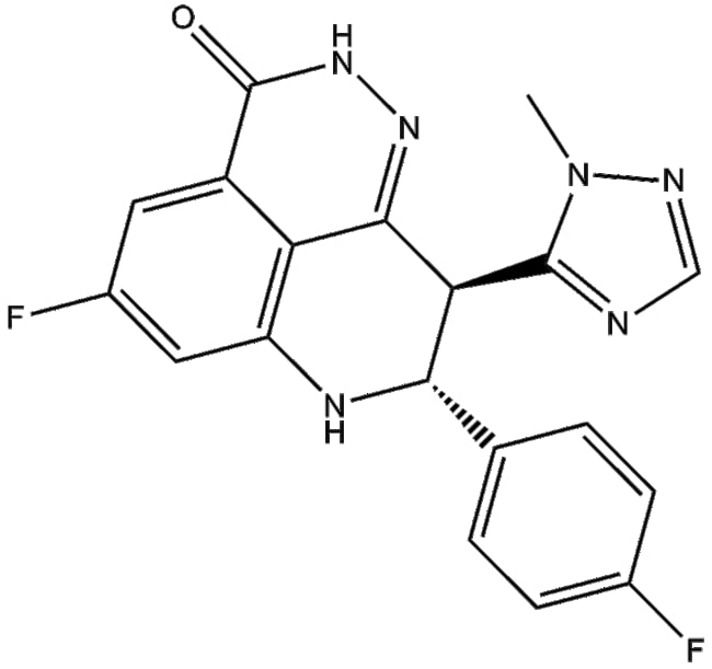 BMN-673 8R 9S (CAS 1207456-00-5) is an inactive stereoisomer of BMN-673 a potent poly(ADP-ribose) polymerase 1 and 2 (PARP1/2) inhibitor While BMN-673 demonstrates selective cytotoxicity toward tumor cells with deficiencies in BRCA1 BRCA2 or PTEN exploiting vulnerabilities in DNA repair pathways BMN-673 8R 9S lacks inhibitory activity This renders BMN-673 8R 9S a valuable negative control in studies investigating PARP inhibition mechanisms and differentiating on-target from off-target effects in cellular and in vivo models of DNA repair deficiency Its use supports rigorous evaluation of PARP1/2 inhibitor specificity in translational cancer research