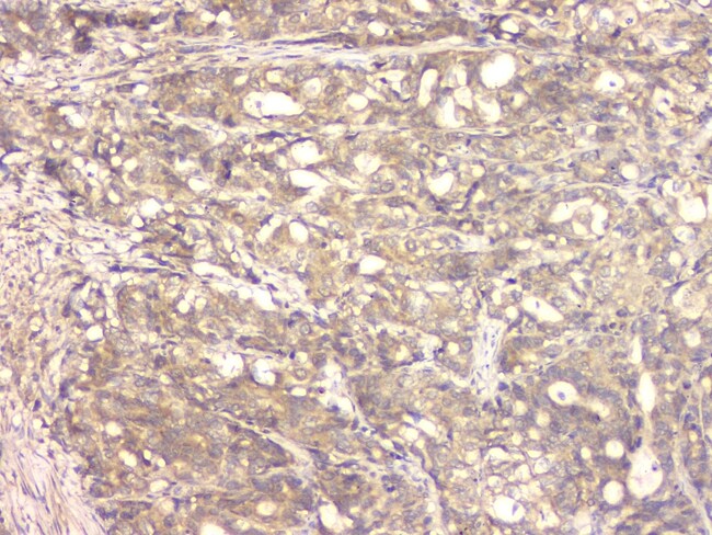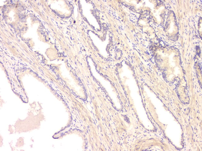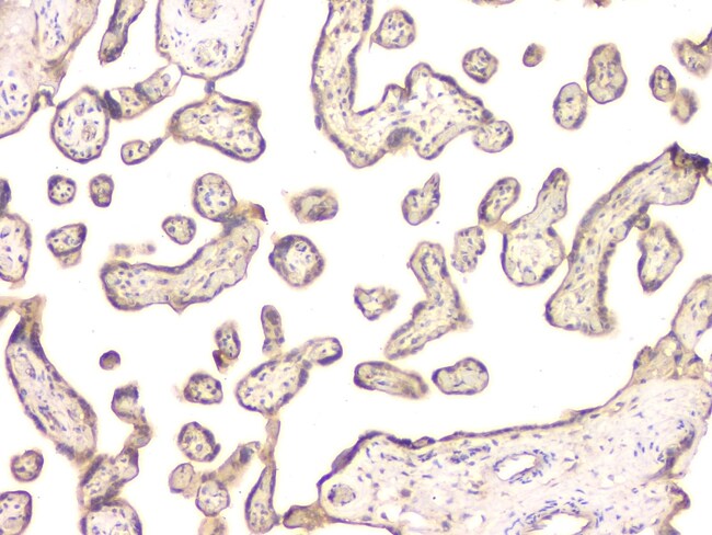 Reconstitute with 0.2 mL of distilled water to yield a concentration of 500 μg/mL. Positive Control - WB: human Hela whole cell, human placenta tissue, human Caco-2 whole cell, rat lung tissue, mouse lung tissue. IHC: mouse lung tissue, human gastric cancer tissue, human intestinal cancer tissue, human lung cancer tissue, human ovary cancer tissue, human placenta tissue, human prostatic cancer tissue, human thyroid cancer tissue, human tonsil tissue, rat lung tissue. Store at -20°C for one year from date of receipt. After reconstitution, at 4°C for one month. It can also be aliquotted and stored frozen at -20°C for six months. Avoid repeated freeze-thaw cycles.