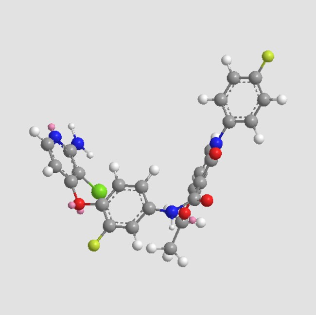BMS-777607 (CAS 1025720-94-8) is an orally bioavailable ATP-competitive inhibitor targeting MET kinase and related receptor tyrosine kinases It selectively inhibits members of the MET family including RON MET Tyro-3 and Axl with IC50 values of 1 8 nmol/L 3 9 nmol/L 4 3 nmol/L and 1 1 nmol/L respectively At higher doses it also inhibits additional tyrosine kinases such as Mer Flt-3 Aurora B Lck and VEGFR2 BMS-777607 has been shown to suppress c-Met autophosphorylation (IC50 20 nmol/L) thereby impairing tumor xenograft growth and metastatic phenotypes supporting its utility in oncological research models exploring MET-driven tumorigenesis and cancer progression