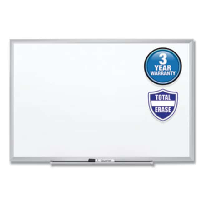 Total Erase dry-erase board has a durable surface that resists ghosting and staining. Best suited for moderate use in spaces with regular traffic. Erases cleanly and will remain pristine with only occasional maintenance. Frame color complements virtually any décor. Board can be mounted vertically or horizontally with included mounting hardware. Extend surface life of board by cleaning regularly with Quartet cleaning solutions. Marker tray and 1 Quartet dry-erase marker included.