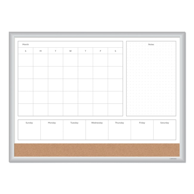 Essendant U Brands 4N1 Magnetic Dry Erase Combo Board Week/Month Planning 24x18 (Actual Size- 23x17) Tan/WH Surface Satin Aluminum Frame