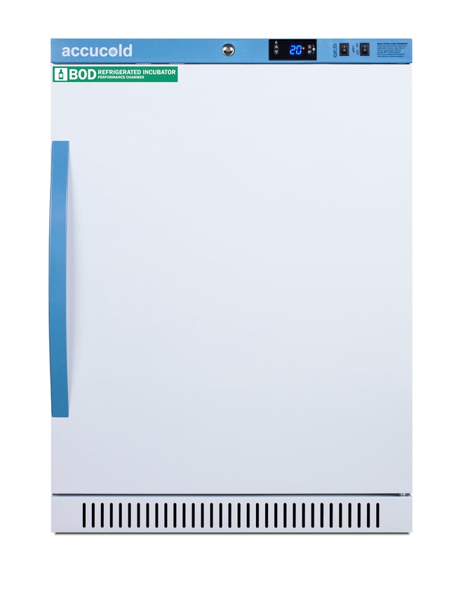 Model ABOD6 is a 6 cu.ft. refrigerated incubator. The adjustable control range allows you to manage the temperature between 4º and 60ºC (39.2 to 140ºF) and comes preset at 20ºC. The microprocessor temperature controller is externally located to minimize door openings, helping to protect stored contents from ambient temperature. The buffered temperature probe is encased in a glycol-filled bottle to better simulate temperature of the stored product.The current and min/max temperature display is viewable in Celsius or Fahrenheit to the nearest tenth of a degree. The audible and visual temperature alarm sounds if the unit's interior goes out of range. Additional alarms include a power failure alert, door open alarm, and sensor failure alarm. The ABOD6 utilizes adjustable cycle defrost operation to avoid temperature spikes. Optimized forced air cooling with one internal fan ensures excellent temperature stability and uniformity with rapid recovery after door openings.
