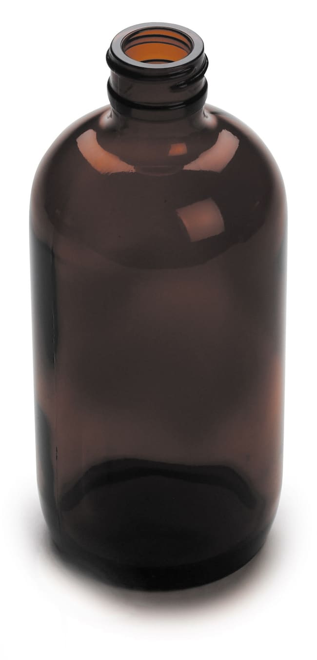 Amber glass protects contents form damaging effect of sunlight. Cap sold separately. pk/6.