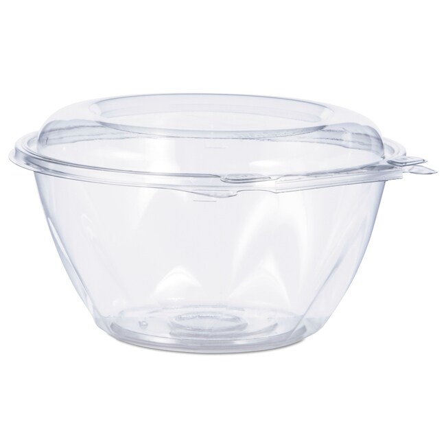 TamperAlert hinge protrudes outward when torn alerting the customer that the container has been opened Hinge remains attached to the container meaning no loose plastic pieces and therefore no littering MicroTrim edge contributes to tamper-resistance by inhibiting the ability to lift up the lid from the base without tearing the hinge 360 degree leak-resistant perimeter seal completely seals entire tray for maximum freshness and to prevent leaks Recessed stacking platform provides greater stability of merchandising displays Offset opening tabs and lift and hold embossing makes SafeSeal bowls easier to open Crystal clear container with minimal sidewall ribbing Food Container Type- Base/Lid Combo Material(s)- PET - Polyethylene Terephthalate Material Type- Plastic Interior Volume Capacity- 32 oz