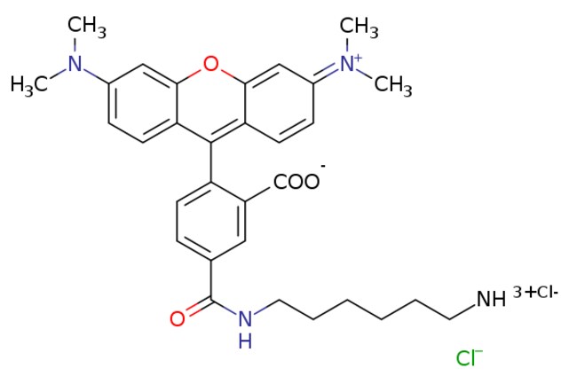 TAMRA amine, 5-isomer | Broadpharm | 2158336-48-0 | | 565.110 | C31H37ClN4O4 | 98.000 | [Cl-].CN(C)c1ccc2c(-c3ccc(cc3C([O-])=O)C(=O)NCCCCCC[NH3+])c3ccc(cc3oc2c1)=[N+](C)C | 50mg | 374905216