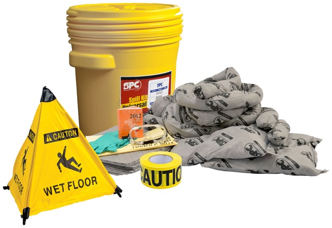 - Kit includes “Caution” tape and a “Wet Floor” sign to help prevent slips, trips and falls during spill clean-up