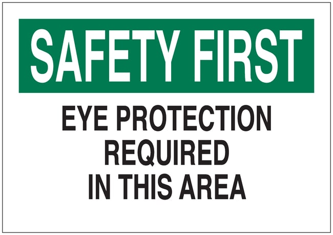 Brady™ Signs: SAFETY FIRST: EYE PROTECTION REQUIRED IN THIS AREA