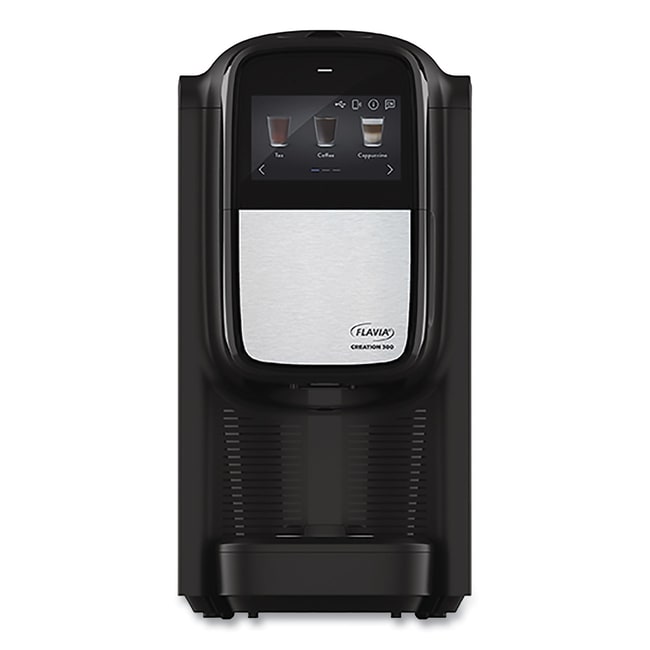 FLAVIA Creation 300 Coffee Brewer Machine satisfies your entire office with hot and cold beverages including coffees teas lattes infused waters and more when paired with the Flavia Chill Refresh It comes with patented in-cup frothing with milk and nondairy alternatives Pure Taste guarantee means this brewer is designed for no taste or allergen transfer between drinks Pack-to-cup brewing process ensures nothing touches the ingredients other than hot water ensuring your drink does not taste like previous brews Smart online brewer technology makes managing office beverages a breeze through Flavia IQ Brewer can be plumbed-in or used as a pourover unit when paired with Flavia Refill The 4 5 high-resolution touch screen is easy to use with interactive content Drink volume per cup comes in the following sizes- small (5 4 oz) regular (7 oz) large (8 3 oz) and over ice (3 oz) C300 machine volume capacity is seven drinks Number of Cups- 1 Interior Volume Capacity- 137 3 oz Wid