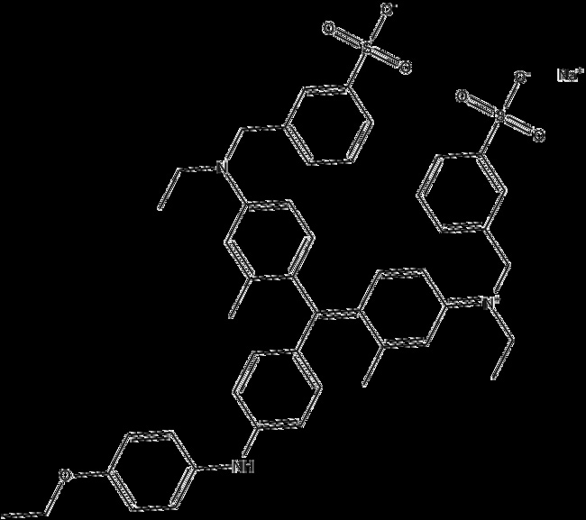 Coomassie Brilliant Blue G-250 is used for protein staining in SDS-PAGE, Blue Native PAGE, and the Bradford Method, with high band visibility. In the staining reaction, the Coomassie dye binds to proteins through ionic interactions between sulfonic acid groups and positive protein amine groups through Van der Waals attractions. The gels are soaked in dye and excess stain is then eluted with a solvent (“de-staining”). This treatment allows the visualization of protein bands.Brilliant Blue G is also a selective inhibitor of the P2X purinoceptor channel P2X7 [1]. Other sizes are also available. Please inqury us for quote.