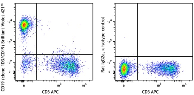 Brilliant Violet 421™ anti-mouse CD19 [1D3/CD19]; Isotype: Rat IgG2a, κ; Reactivity: Mouse; Apps: FC; Size: 50 μg