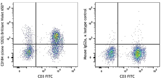 Brilliant Violet 650™ anti-human CD184 (CXCR4) [12G5]; Isotype: Mouse IgG2a, κ; Reactivity: Human, Cynomolgus, Rhesus; Apps: FC; Size: 25 tests