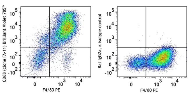 Brilliant Violet 785™ anti-mouse CD68 [FA-11]; Isotype: Rat IgG2a; Reactivity: Mouse; Apps: ICFC; Size: 50 μg