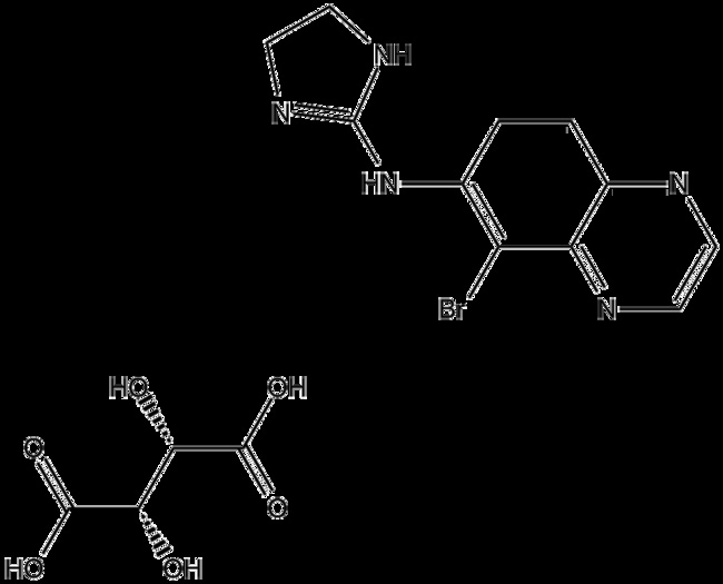 Brimonidine tartrate (CAS 70359-46-5) is a selective agonist of the -adrenergic receptor By activating these receptors it inhibits adenylyl cyclase activity resulting in decreased intracellular cyclic AMP (cAMP) levels This modulation reduces sympathetic neural activity lowers aqueous humor production and enhances uveoscleral outflow in ocular tissues Brimonidine tartrate is widely employed in research on glaucoma and ocular hypertension and serves as a standard tool in studies investigating -adrenergic signaling and autonomic nervous system regulation