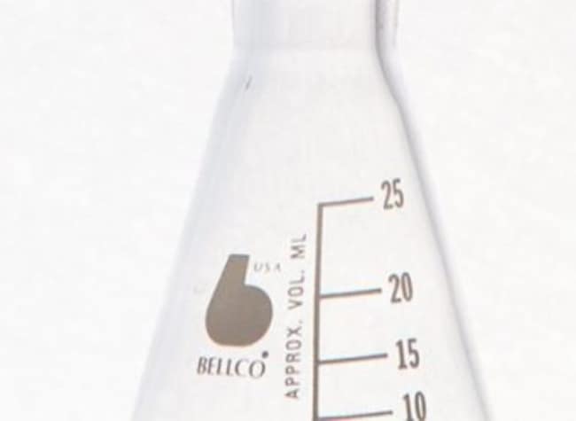 Bellco Glass, Inc. Manufactured from type 1 class a Borosilicate glass. Ideal for general laboratory involving media mixing, storage and dispensing. Narrow mouth with break resistant lip that resists chipping. Graduated to approximate volumes. Sizes: 25ml Stopper s