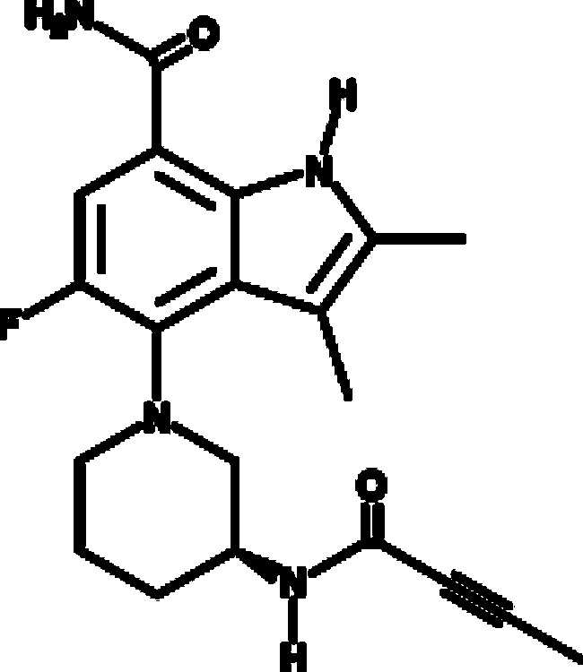 A covalent BTK inhibitor (IC50 = 0.1 nM); >5,000-fold selective for BTK over a panel of 240 kinases but does inhibit TEC, BMX, and TMX (IC50s = 0.9, 1.5, and 5.0 nM, respectively); inhibits BCR stimulation-induced calcium flux in Ramos B cells (IC50 = 7.2 nM), as well as BCR stimulation-induced proliferation of, and CD86 surface expression in, peripheral B cells (IC50s = 0.04 and 0.3 nM, respectively); inhibits Fcγ receptor stimulation-induced TNF-α production in human PBMCs (IC50 = 0.3 nM); completely protective against bone destruction in a mouse model of collagen-induced arthritis at 0.5 mg/kg; reduces proteinuria and glomerular IgG immune complex deposition and increases survival in an NZB/W lupus-prone mouse model