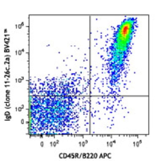 Brilliant Violet 421™ anti-mouse IgD [11-26c.2a]; Isotype: Rat IgG2a, κ; Reactivity: Mouse; Apps: FC; Size: 50 ug