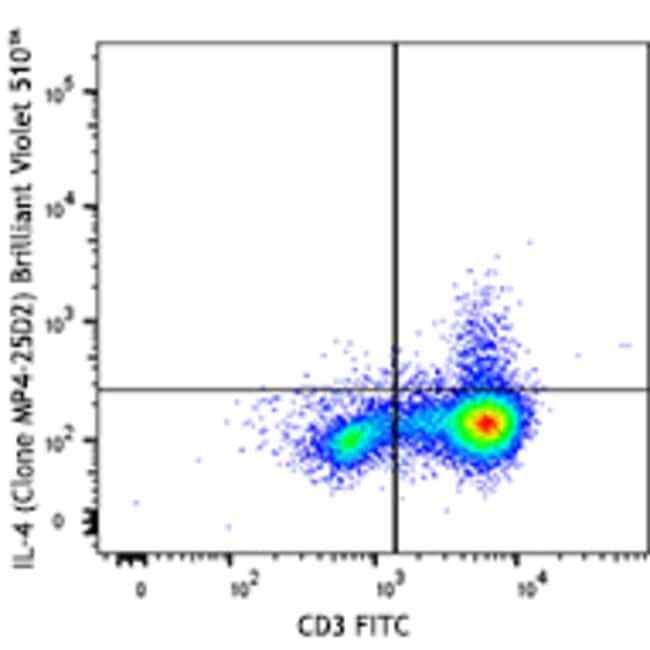 Brilliant Violet 510™ anti-human IL-4 [MP4-25D2]; Isotype: Rat IgG1, κ; Reactivity: Human, Cross-Reactivity: Swine (Pig, Porcine), Rhesus; Apps: ICFC; Size: 100 tests