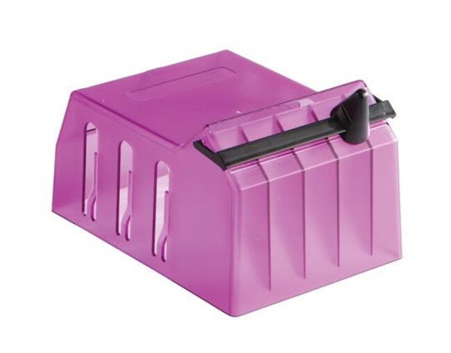 Box Top Parafilm M Dispensers feature easy application with no mess. To use, simply place the dispenser on top of the Parafilm M box and pull the sealing film through. There is no need to remove rolls from the packaging. The built in safety blade slides and cuts without danger to fingertips. Accommodates two 50 mm (2"), or one 100 mm (4") Parafilm M rolls. Supplied with two safety blades. Made from ABS plastic making the unit easy to clean. Color: Purple. Size: 4.9 x 6.8 x 3.9 in .