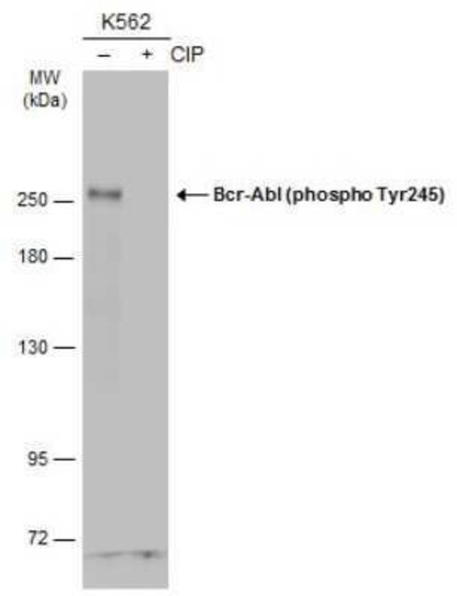 | Immunogen | Carrier-protein conjugated synthetic peptide corresponding to residues around mouse c-Abl (phospho Tyr245). The exact sequence is proprietary. |