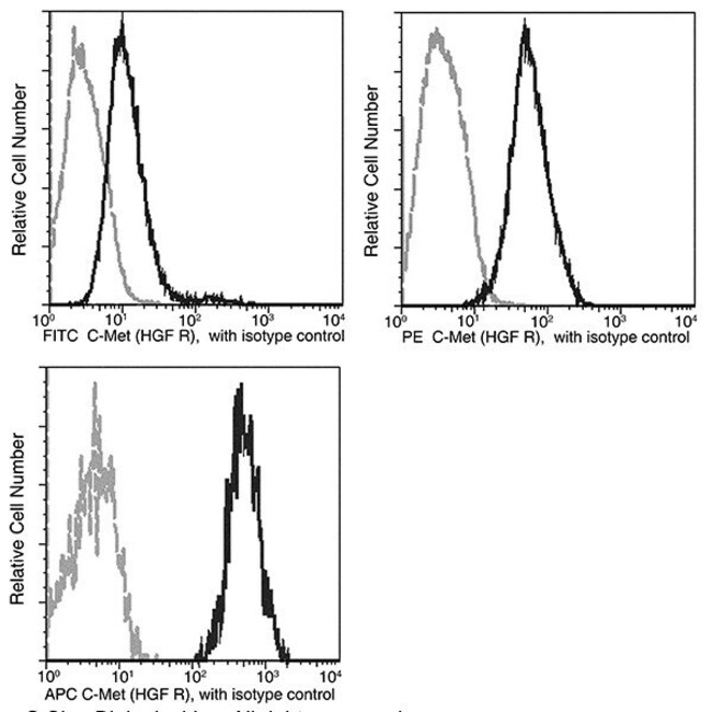Preparation: This antibody was obtained from a rabbit immunized with purified, recombinant Human c-Met (Met1-Thr932) and conjugated with PE under optimum conditions, the unreacted PE was removed. Storage: This antibody can be stored at 2C-8C for twelve months without detectable loss of activity. Protected from prolonged exposure to light. Do not freeze!.