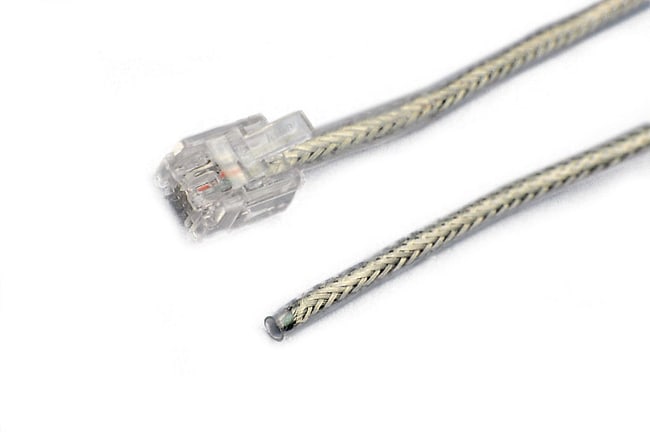 This shielded cable is often used with the WPI DAM50 Bioamplifier. It has an RJ11 connector for the DAM50 input port. The other end is unterminated so you can build the piece you need for you own application.