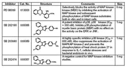 Contains 5 mg of the MEK inhibitor PD 98059 (Cat. No. 513000), 1 mg each of the MAP kinase inhibitors SB 202190 (Cat. No. 559388) and SB 203580 (Cat. No. 559389), and 1 mg of the negative control, SB 202474 (Cat. No. 559387). Supplied with a data sheet.