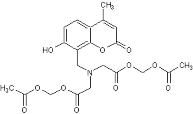MW 465.4 Da, Purity >95%. Blue fluorescent cell viability probe which won't overlap with green fluorescence from other probes. Penetrates live cell membranes and is virtually non-fluorescent. Upon ubiquitous esterase enzyme activity it produces a bright blue fluorescent that is trapped in live cells - convenient for measurement by epifluorescence light microscopy or flow cytometry. Useful to measure the total number of live versus dead cells - dye leaks out quickly due to the compromised membrane in dead cells resulting in no staining.