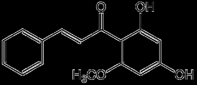 Chemical. CAS: 19309-14-9. Formula: C16 H14 O4. MW: 270.28. Cardamonin is a calchone from Aplinia species (zingiberaceous plant species) with anti-cancer and anti-inflammatory, anti-nociceptive activity. Cardamonin suppresses NF-kappa nuclear translocation and Ik-Ba phosphorylation. It has been shown to suppress nitric oxide and prostaglandin E2 synthesis, to suppress cyclooxygenase-2 expression, and to inhibit NF-kappa signaling. It induces apoptosis in cancer cells, suppresses melanogenesis by inhibition of Wnt/beta-catenin signaling and ameliorates insulin resistance. It has been shown to induce autophagy and an antiproliferative effect through JNK activation. It is an hTRPA1 antagonist and shows also anti-parasitic activity. Also shown inhibition of NLRP3 inflammasome activation via an AhR/Nrf2/NQO1 pathway.