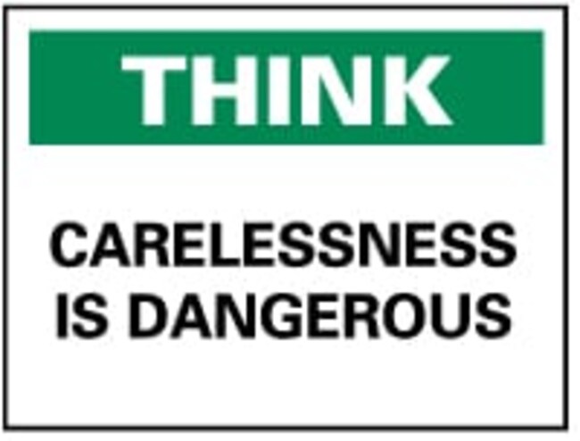 Accident Prevention Sign: Rectangle, "CARELESSNESS IS DANGEROUS"