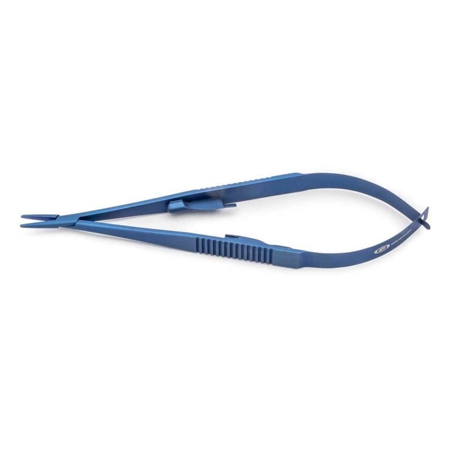 Castroviejo Needle Holders are a surgical instrument used for microsurgery requiring precise control and manipulation of small needles, though they are most commonly used in ophthalmic surgery. Our Castroviejo Needle Holders feature fine tips for grasping and manipulation of small, delicate needles. The jaws can either be serrated (cross-hatched) or smooth. Serrated jaws help prevent slippage and ensures a secure grip on the needle, though this may not always be required. With fragile tissues, a serrated tip may cause excessive trauma or damage to the tissue, and a smooth tip may be preferred. Some synthetic sutures, such as polypropylene or PTFE, are less prone to slipping than natural sutures and may not require a serrated tip. If a surgeon is approximating a delicate tissue layer, a smooth tip may be chosen. The locking mechanism on the spring handles ensures the needle is held firmly and reduces the risk of slipping.