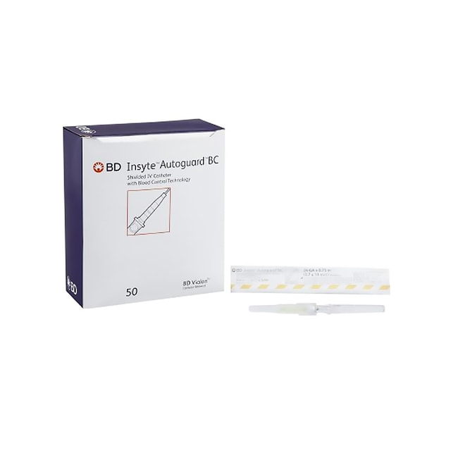 Peripheral IV Catheter Insyte Autoguard BC 24 Gauge 0 75 Inch Button Retracting Safety Needle 382512 Each