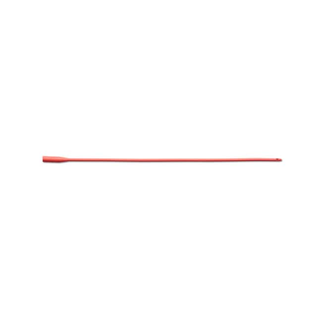 Red Rubber Latex Uretheral Catheter. Suitable for male or female catheterization. Smooth tip, two oval eyes and funnel end. 16" length and radiopaque. sterile.