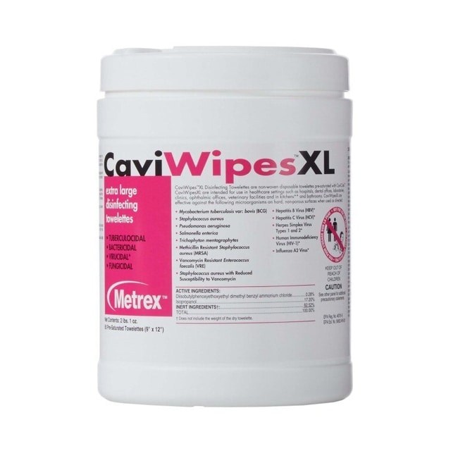 Metrex CaviWipes Surface Disinfectant Alcohol-Based Wipes Non-Sterile Disposable Alcohol Scent Canister 9 X 12in 66/Cannister 13-1150 12 Cannisters