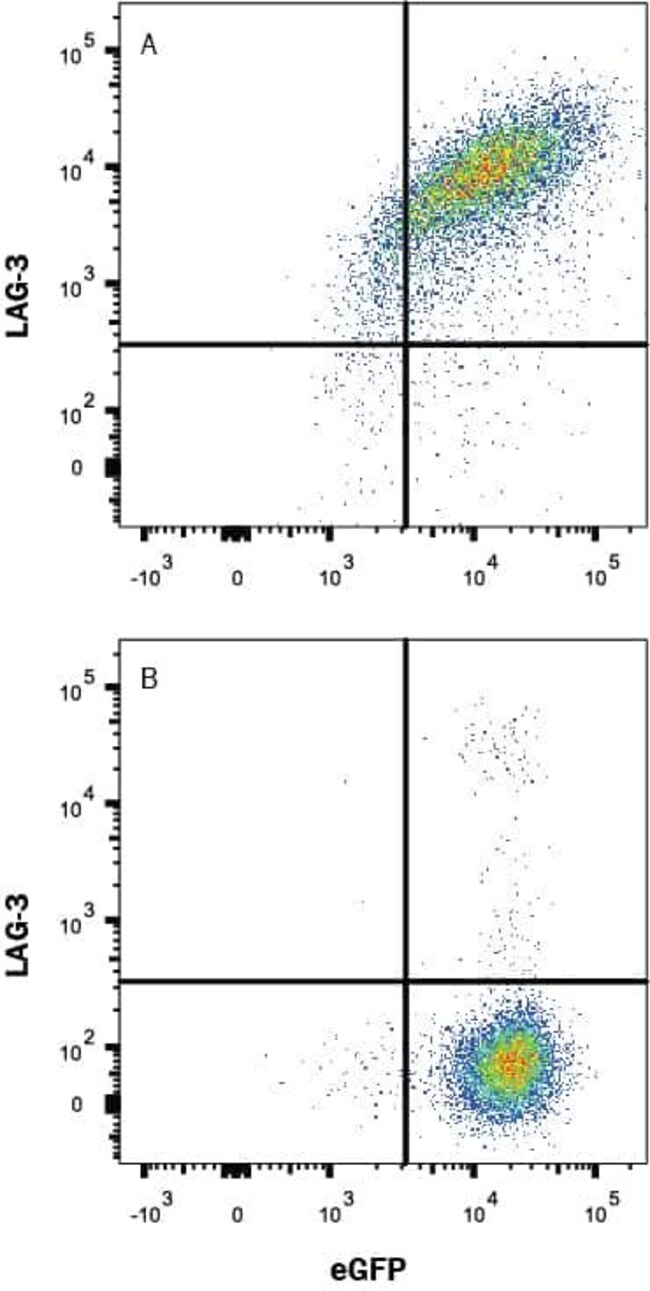 In direct ELISAs and Western blots, less than 1% cross-reactivity with recombinant mouse LAG-3 is observed. Reconstitute at 0.2 mg/mL in sterile PBS.