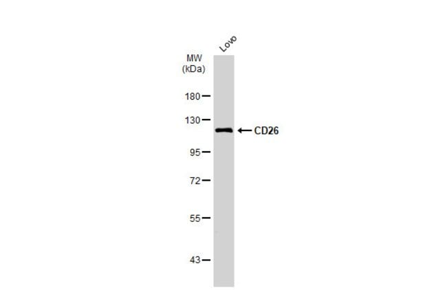 CD26 (dipeptidyl peptidase IV, DPP IV), adenosine deaminase (ADA) binding protein) is a homodimeric atypical serine protease belonging to the prolyl oligopeptidase family. CD26 is expressed on lymphocyte cells and is upregulated during T-cell activation. CD26 is also expressed on activated B cells and natural killer cells and abundantly on epithelia. CD26 is implicated in a variety of biological functions including T-cell activation, cell adhesion with extracellular matrix such as fibronectin or collagens, and in HIV infection. CD26 identical to adenosine deaminase complexing protein-2, and to the T-cell activation antigen CD26. Further, CD26 is an intrinsic membrane glycoprotein and a serine exopeptidase that cleaves X-proline dipeptides from the N-terminus of polypeptides. Alterations in CD26 peptidase activity are characteristic of malignant transformation, and the enzymatic activity increases dramatically with tumor grade and severity. CD26 is expressed in various blood cell types, but also in cells that are histogenetically related to activated fibroblasts. Alterations in CD26 density have been reported on circulating monocytes and CD4+ T cells during rheumatoid arthritis and systemic lupus erythematosus.