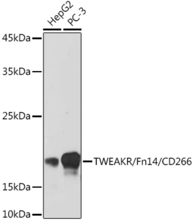 | AI255180; C87282; CD266; FGF-inducible 14; Fgfrp2; fibroblast growth factor regulated protein 2; fibroblast growth factor-inducible immediate-early response protein 14; Fibroblast growth factor-regulated protein 2; FN14; HPIP; TNF receptor superfamily member 12A; TNFRSF12A; Tumor necrosis factor receptor superfamily member 12A; tumor necrosis factor receptor superfamily, member 12A; TweakR; TWEAK-R; Tweak-receptor; type I transmembrane protein Fn14 | |