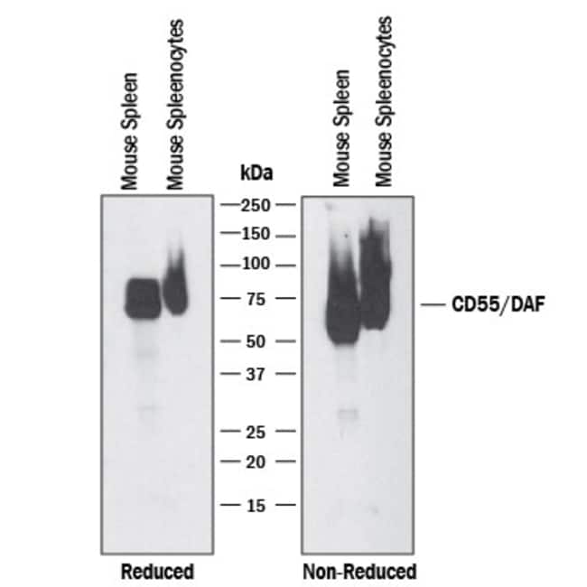 In direct ELISAs and Western blots, less than 1% cross-reactivity with recombinant human CD55 and recombinant mouse CD97 is observed. Reconstitute at 0.2 mg/mL in sterile PBS.
