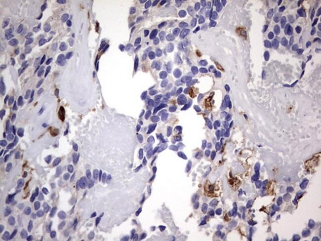 CD68 (Macrosialin) is a 110 kDa integral membrane glycoprotein predomitly expressed on the intracellular lysomsomes of monocytes and macrophages and to a lesser extent by dendritic cells and peripheral blood granulocytes. Also, CD68 could play a role in phagocytic activities of tissue macrophages, both in intracellular lysosomal metabolism and extracellular cell-cell and cell-pathogen interactions. CD68 is expressed by interdigitating reticulum cells in tonsil and some histiocytic lymphoma or histiocytosis, acute myeloid leukemia (AML), and granulocytic sarcoma. Elevated expression of CD68 has been demonstrated on CD34+ cells in various human maligcies, including several Acute Myeloid Leukemia studies.Specifications
