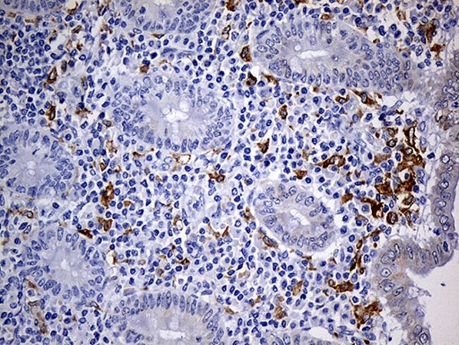 CD68 (Macrosialin) is a 110 kDa integral membrane glycoprotein predomitly expressed on the intracellular lysomsomes of monocytes and macrophages and to a lesser extent by dendritic cells and peripheral blood granulocytes. Also, CD68 could play a role in phagocytic activities of tissue macrophages, both in intracellular lysosomal metabolism and extracellular cell-cell and cell-pathogen interactions. CD68 is expressed by interdigitating reticulum cells in tonsil and some histiocytic lymphoma or histiocytosis, acute myeloid leukemia (AML), and granulocytic sarcoma. Elevated expression of CD68 has been demonstrated on CD34+ cells in various human maligcies, including several Acute Myeloid Leukemia studies.Specifications