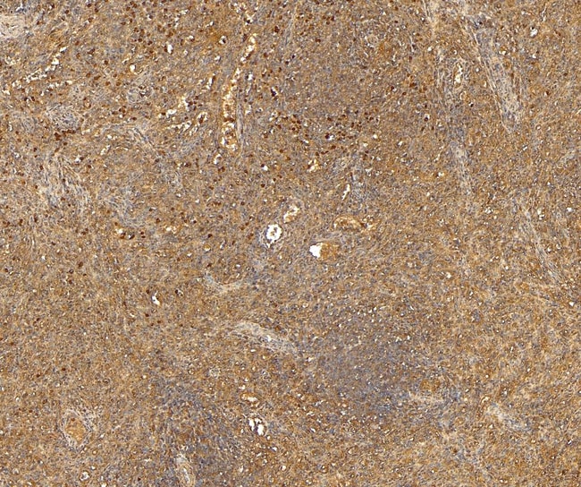 CD68 (Macrosialin) is a 110 kDa integral membrane glycoprotein predominantly expressed on the intracellular lysomsomes of monocytes and macrophages and to a lesser extent by dendritic cells and peripheral blood granulocytes. Also, CD68 could play a role in phagocytic activities of tissue macrophages, both in intracellular lysosomal metabolism and extracellular cell-cell and cell-pathogen interactions. CD68 is expressed by interdigitating reticulum cells in tonsil and some histiocytic lymphoma or histiocytosis, acute myeloid leukemia (AML), and granulocytic sarcoma. Elevated expression of CD68 has been demonstrated on CD34+ cells in various human malignancies, including several Acute Myeloid Leukemia studies.
