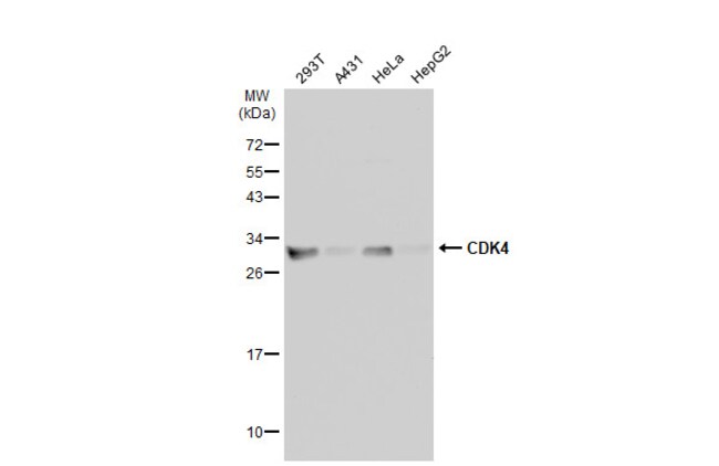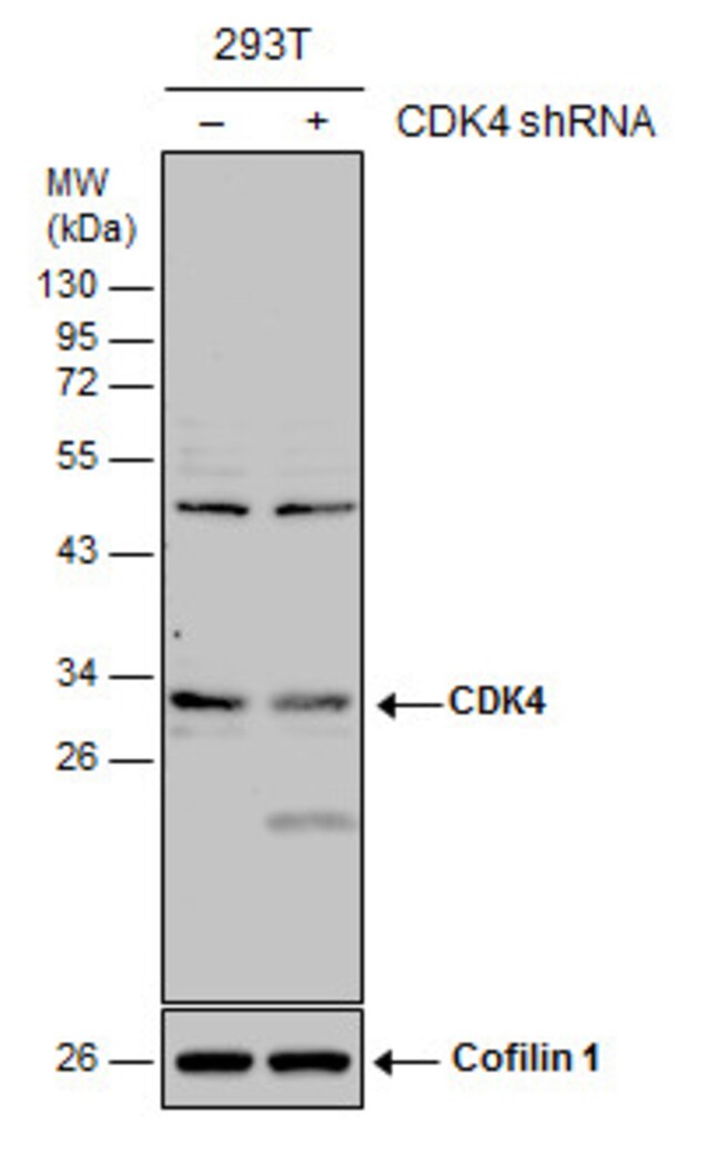 | Recombinant protein encompassing a sequence within the center region of human CDK4. The exact sequence is proprietary. | |