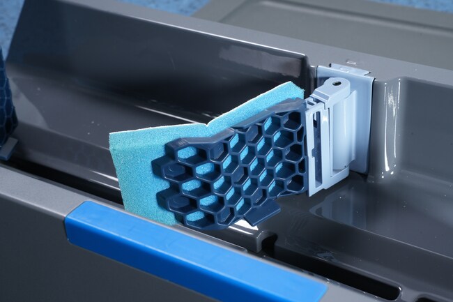 - Honeycomb backer designed to allow faster dosing and dispersion of chemical cleaning agents