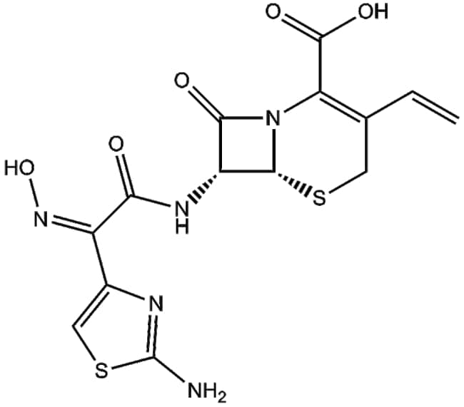 Cefdinir (91832-40-5) is a small-molecule inhibitor targeting penicillin-binding proteins (PBPs) It is designed to inhibit bacterial cell wall synthesis thereby obstructing the final transpeptidation step of peptidoglycan formation Cefdinir exerts its biological activity primarily through PBP binding-mediated inhibition of cell wall biosynthesis In microbiological assays Cefdinir demonstrates antibacterial inhibition with reported IC50 values ranging from approximately 0 5 to 4 g/mL against susceptible bacteria Based on these pharmacological properties Cefdinir holds research potential in antibacterial susceptibility testing determination of minimum inhibitory concentrations (MIC) and investigation of antibiotic resistance mechanisms